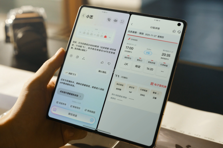 针对阔折叠的全新形态,华为 Pura X 还带来了大量针对性的交互创新:首发的 AI 外屏搭配全新的小艺交互模式,通过呼吸感视效让用户能与小艺进行沉浸式对话;华为阅读为其独创的“AI 眼动翻页”功能,能根据用户的眼球转动实现自动翻书,彻底解放了用户的双手;还有碰一碰发红包、外屏取景器等创新功能,让折叠屏的双屏优势得到了充分发挥。同时,大量鸿蒙生态伙伴应用针对阔折叠形态完成了深度适配,覆盖阅读、游戏、出行、健身等全场景,让全新的产品形态真正转化为了用户可感知的体验升级。