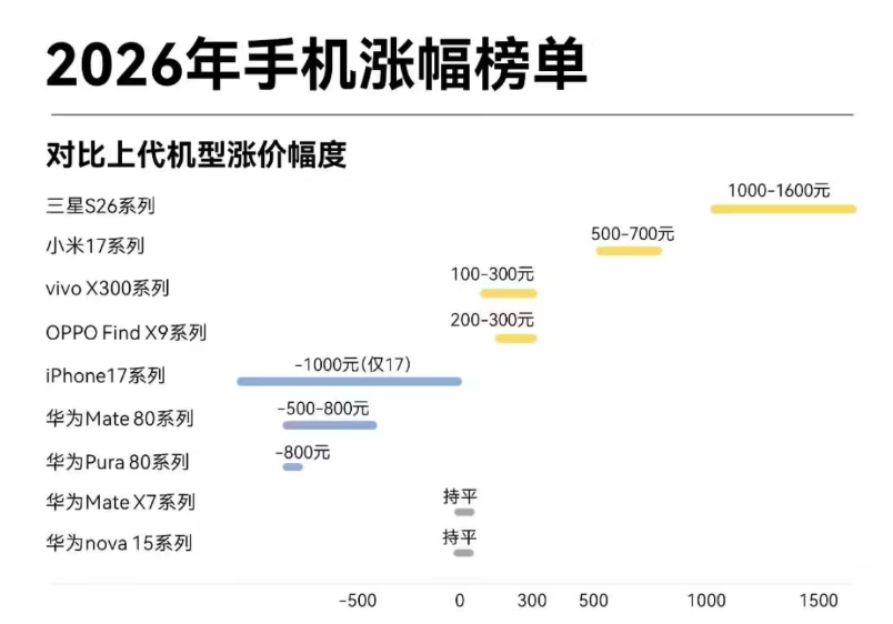 第三方机构 Countpoint 研报显示,2026 年第一季度存储芯片价格的大幅上涨,已导致智能手机入门级产品总物料清单(BOM)成本环比增长超 20%。继 OPPO、一加之后,vivo 与 iQOO 也于近期官宣调整部分产品建议零售价,行业集体涨价的趋势已然成型。